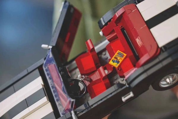 The "base model" is a black Camaro with gray rally stripes on the hood and trunk. However, since these stripes are not printed or implemented with stickers, but are built from LEGO bricks, the designers have included two more colors. So there are additional bricks that you can use to build the rally stripes in either red or white. You can also decide whether you would rather exhibit a convertible or a coupe, because the roof of the LEGO 10304 Chevrolet Camaro Z/28 can be removed if necessary.