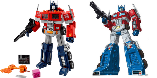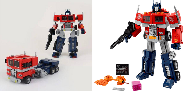 In an official LEGO introduction to 10302 Optimus Prime, an early version of the model was revealed, showing us the initial design of the first official LEGO Transformers model. (Left) Created by LEGO designer Junya Suzuki.