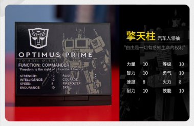 - Authentic accessories – Relive Transformers sagas with accessories that include the "Ion blaster", "Energon axe", "Energon cube", "Autobot Matrix of Leadership", jetpack, display plaque, optional waist panel