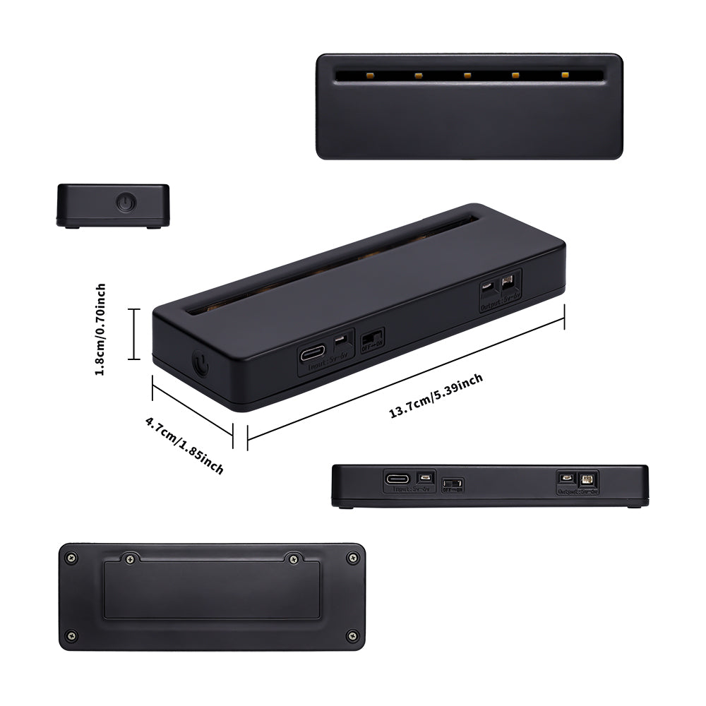 b. Type-C power input(5-6v, compatible with power bank/charger plug/ other device with usb port);