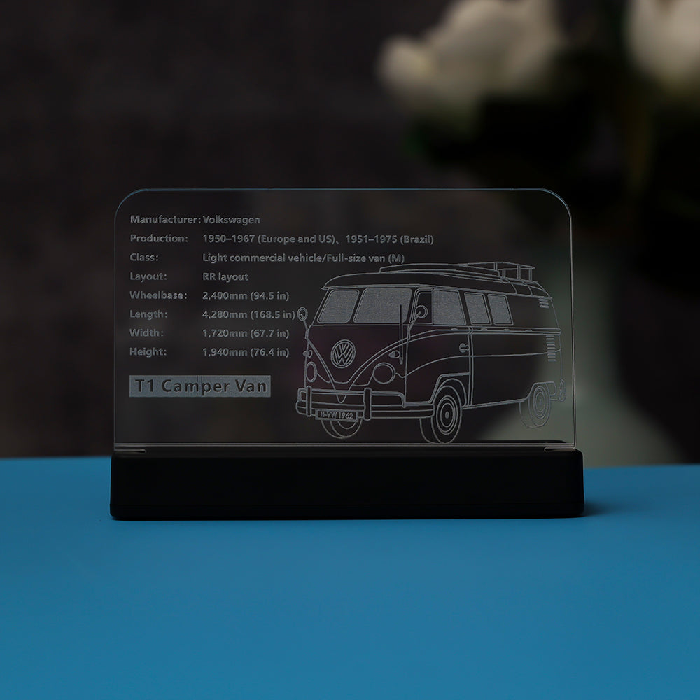 LED Light Acrylic Nameplate for Volkswagen T1 Camper Van #10220
